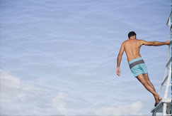 Made in a light and comfortable fabric, short and fitted, plain and flashy colours. And above all, the band with bold prints - it's the trademark of these trunks.